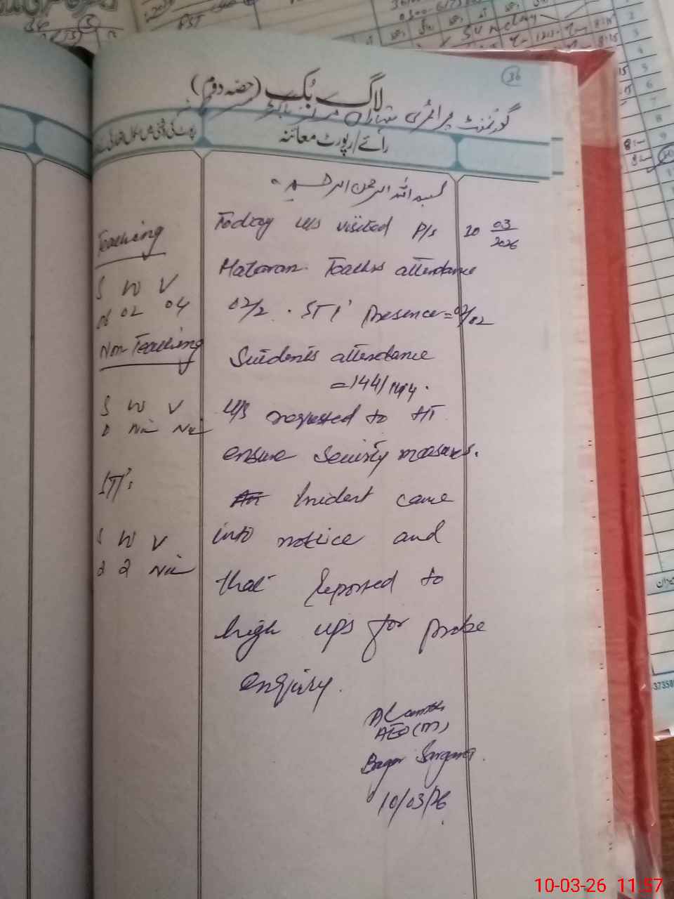 | Certified that this School was Inspected by the Undersigned MEA/DMO Today and the Information Stated Above is as Per Record. | |||||