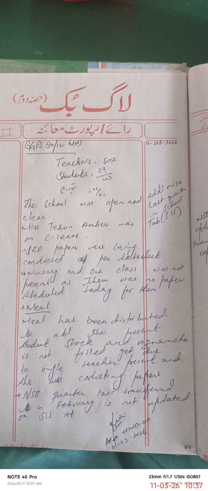 | Attendance Register | Head Teacher | MEA with School | Visit Proof |