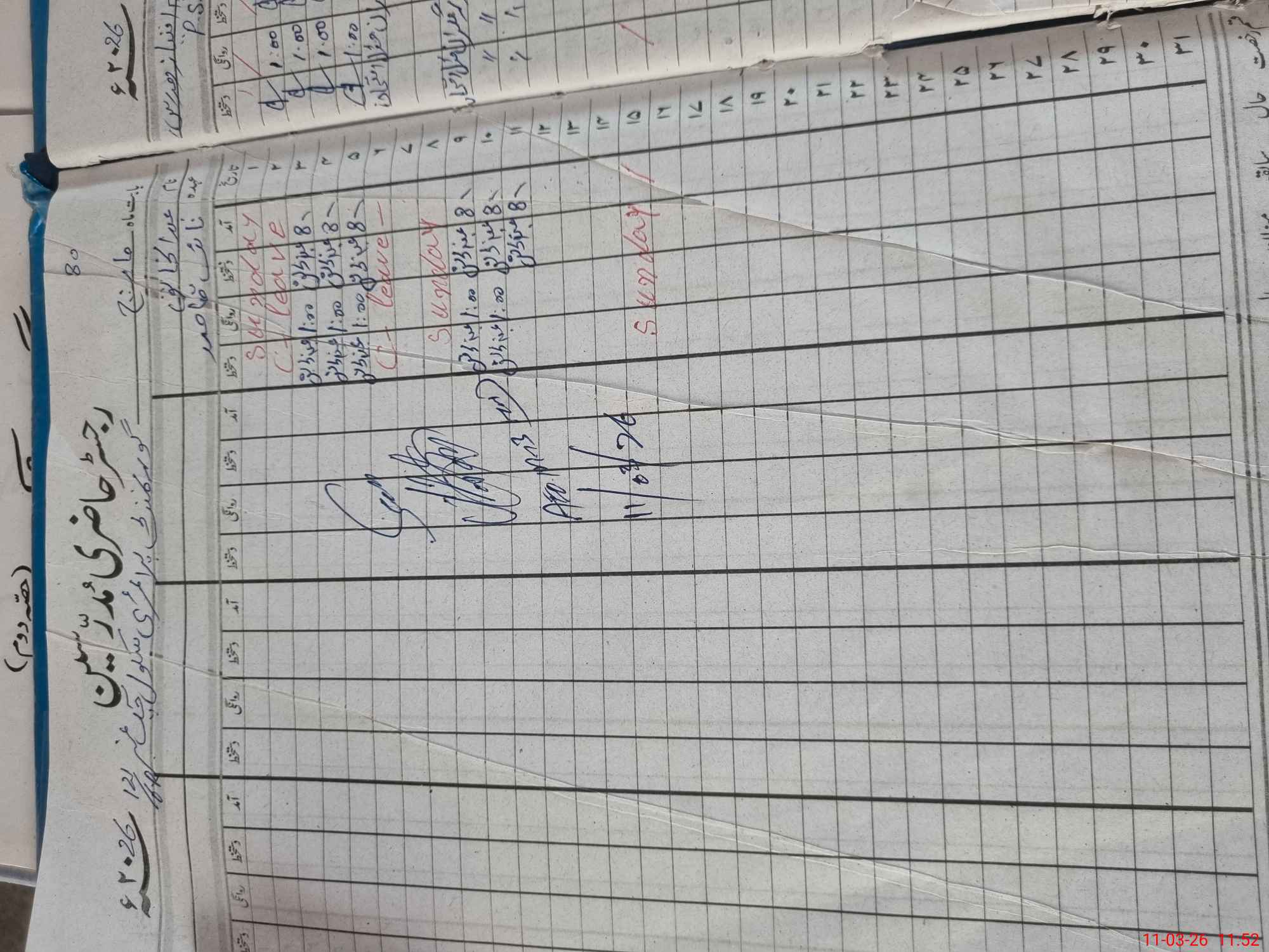 | Leave | Duty | Absent | Maternity | Medical | Ex- Pak |