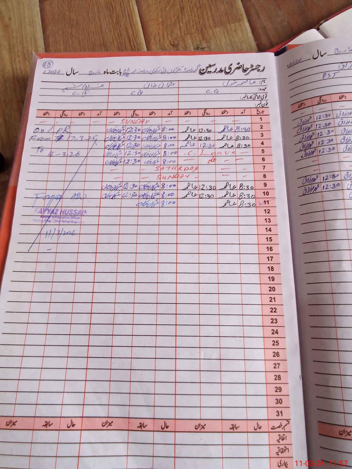 | CNIC | Full Name | Designation | R/C | Absence During Last Calender Month |