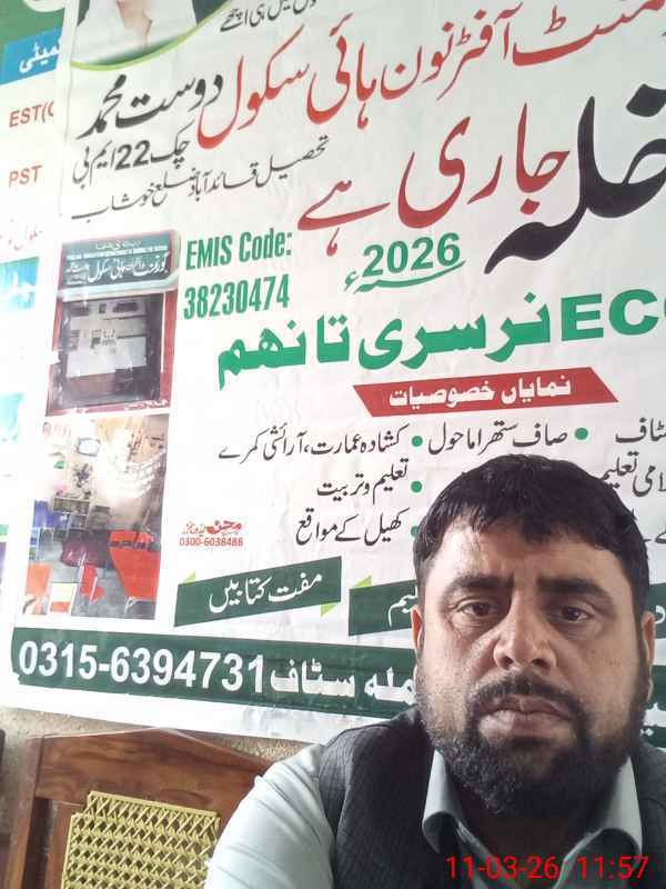 | EMIS Code: 38230474 | Name of School: GES DOST MUHAMMAD CHAK NO. 22 MB | |||