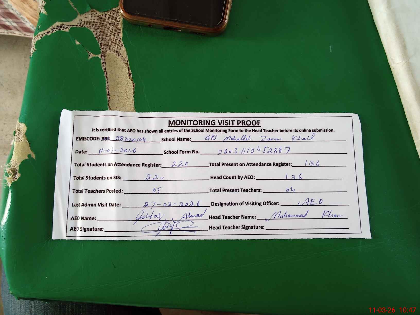 | EMIS Code: 38220104 | Name of School: GPS MOHALLAH ZAMAN KHAIL | |||