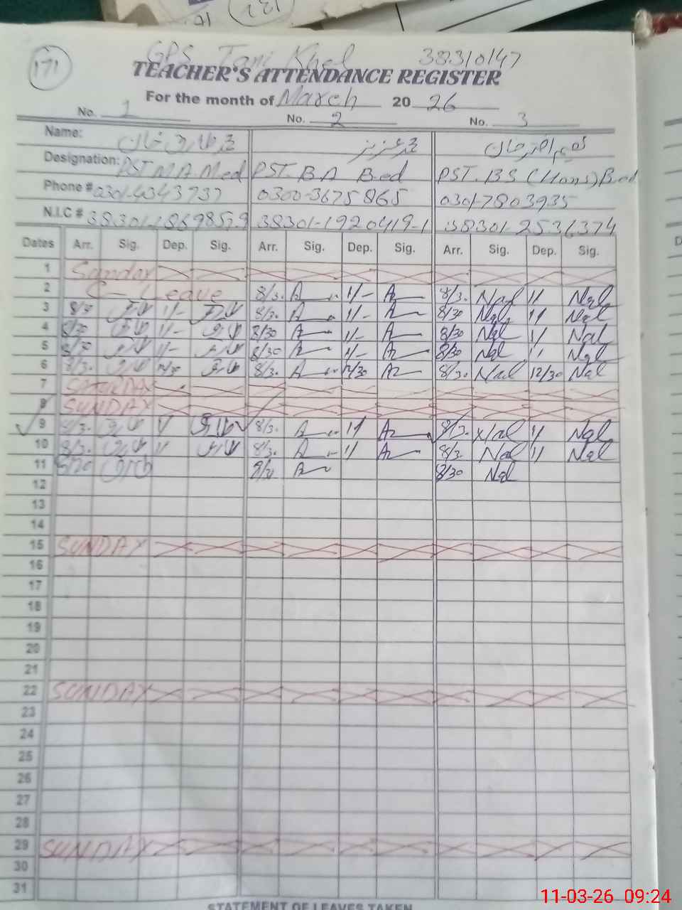 | Name: Na**** Ak**** Kh**** Designation: (School Headmaster's/Headmistress's) PST Phone/Cell Number: 03**** |