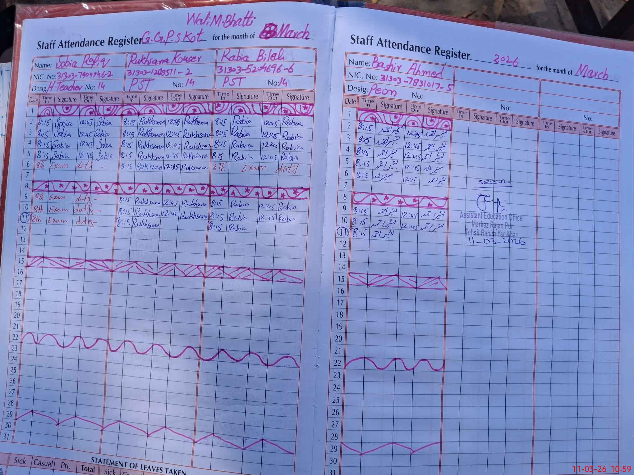 | Name: So**** Ra**** Designation: (School Headmaster's/Headmistress's) PST Phone/Cell Number: 03**** |