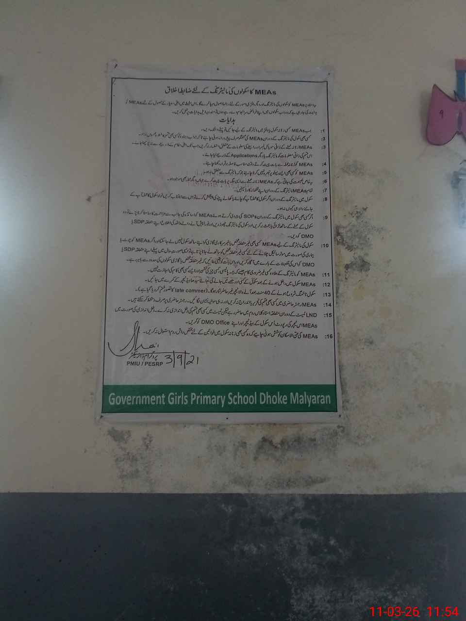 | EMIS Code: 37340095 | Name of School: GGPS DHOK MALLARIAN | |||