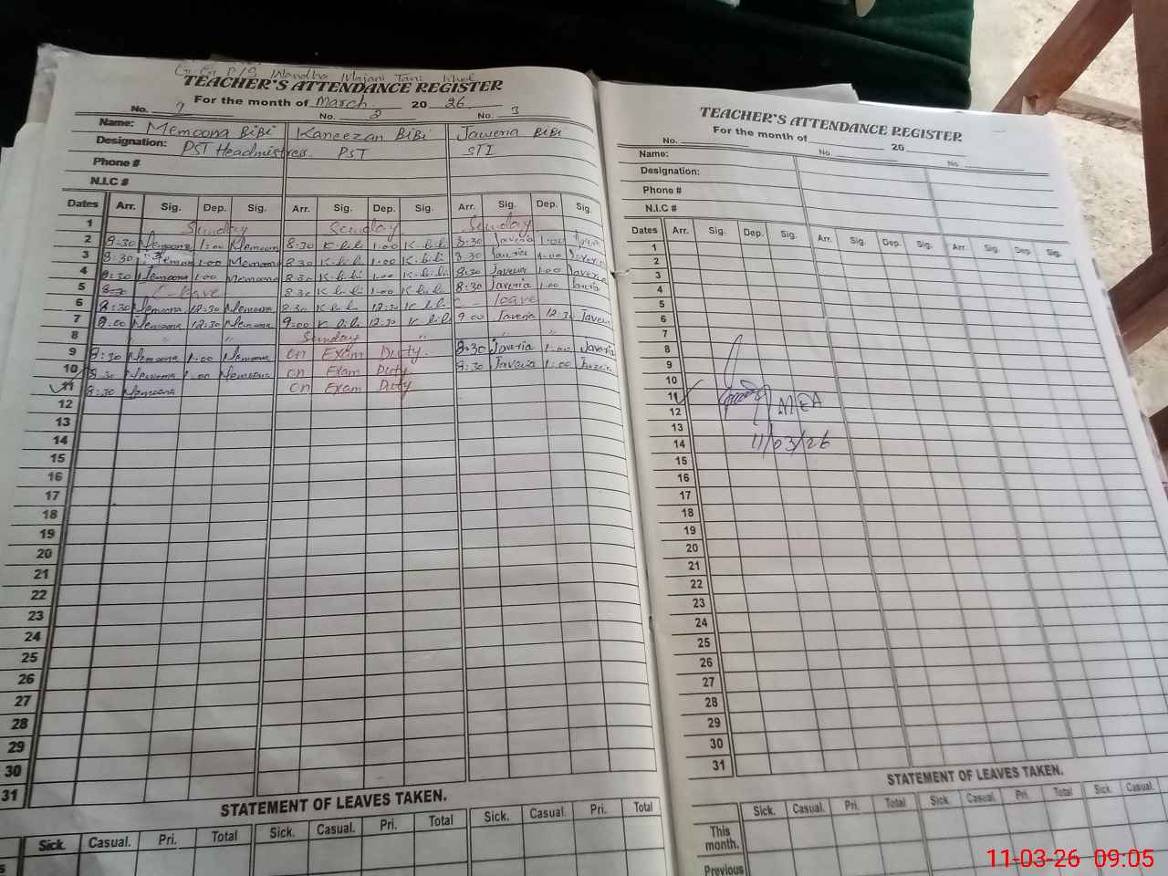 | 38**** | Ka**** Bi**** | PST Arts | Regular | 1 | 0 | 0 | 0 | 0 | 0 | 0 | 0 | 1 | Exam Duty |