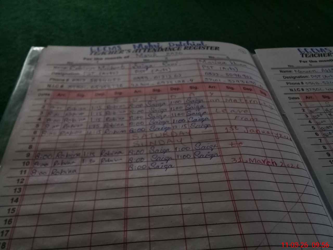 | 37**** | Ma**** Kh**** | PST Arts | Regular | 0 | 0 | 0 | 0 | 0 | 0 | 0 | 0 | 0 | Maternity |