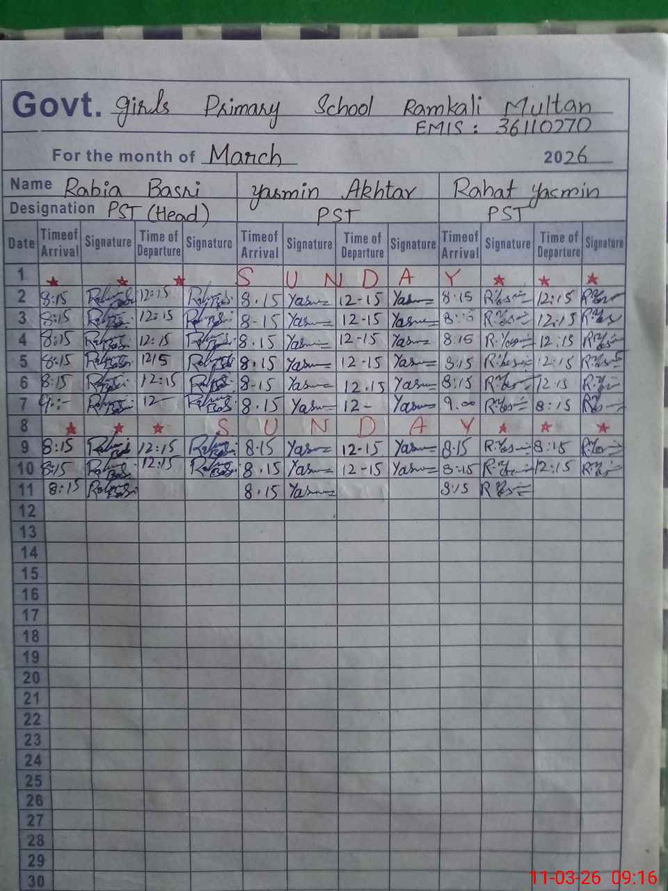 | EMIS Code: 36110270 | Name of School: GGPS RAM KALI NEAR BAHAWALPUR BYPASS | |||