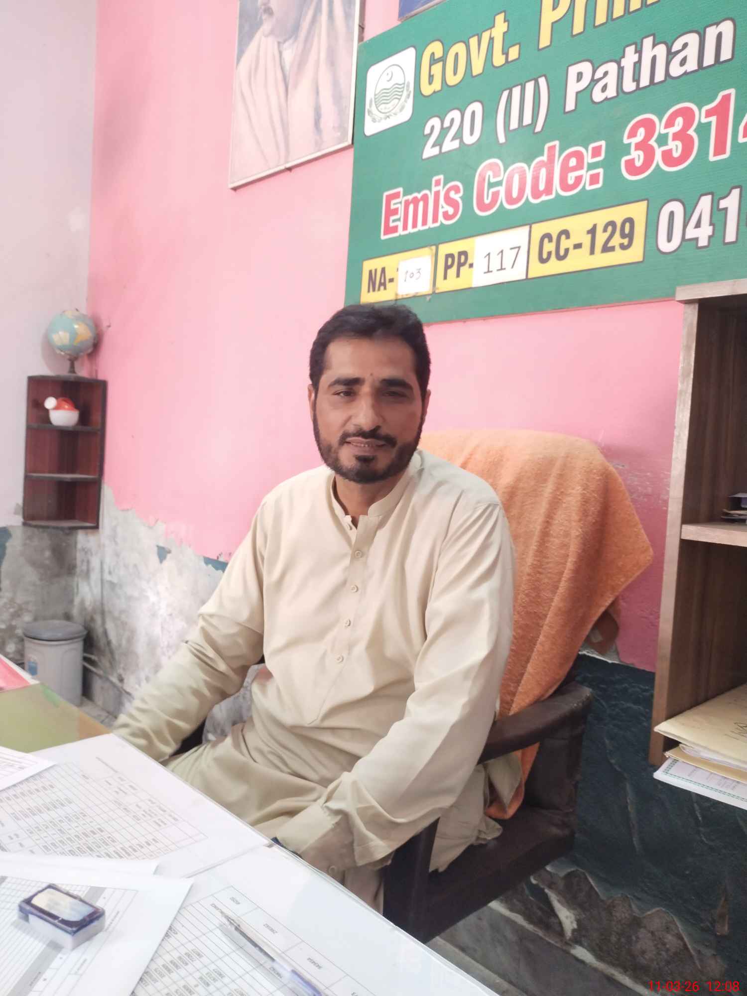 | Name: MU**** JA**** Designation: (School Headmaster's/Headmistress's) PST/PTC/JV Phone/Cell Number: 03**** |