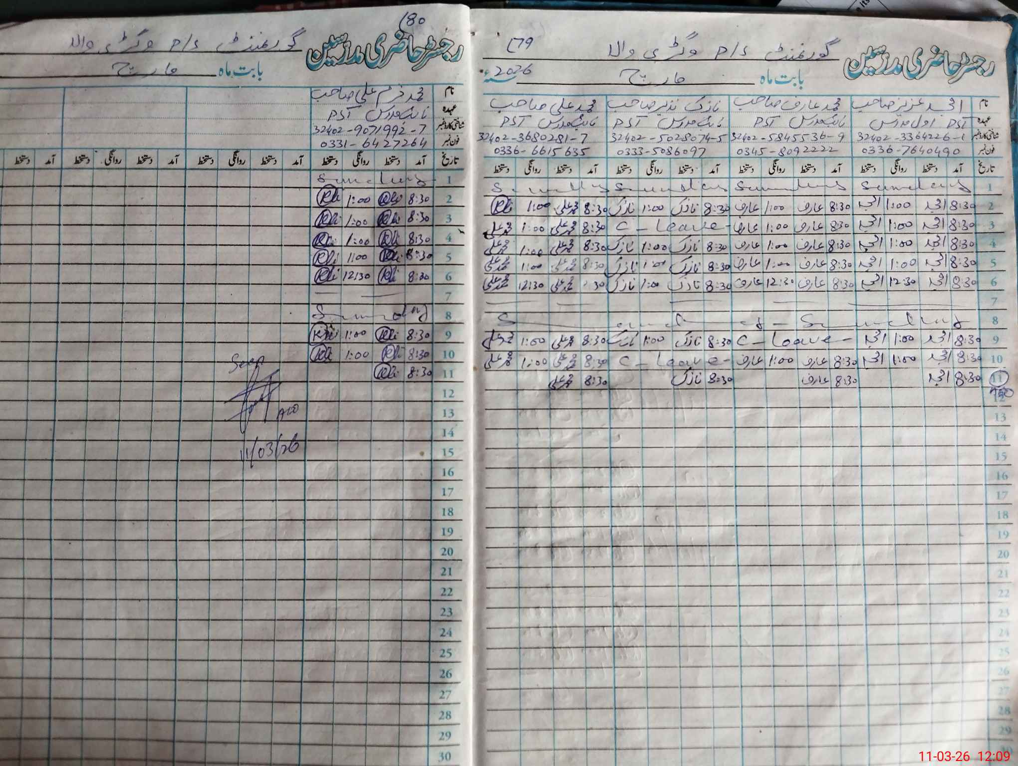 | CNIC | Full Name | Designation | R/C | Absence During Last Calender Month |