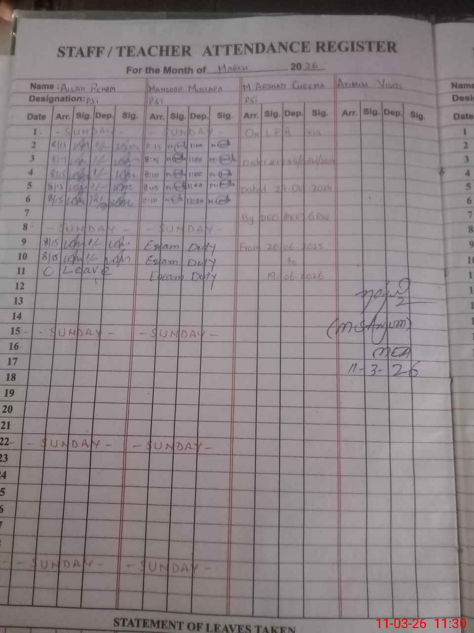 | 34**** | Ab**** Sh**** | ESE (Arts) | Contract | 0 | 0 | 0 | 0 | 0 | 0 | 0 | 0 | 0 | Exam Duty |
