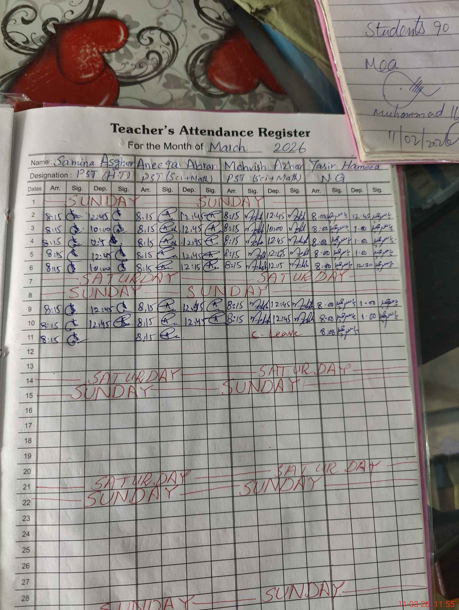 | 33**** | Me**** Az**** | PST Science/Maths | Regular | 0 | 0 | 0 | 0 | 0 | 0 | 0 | 0 | 0 | Casual |