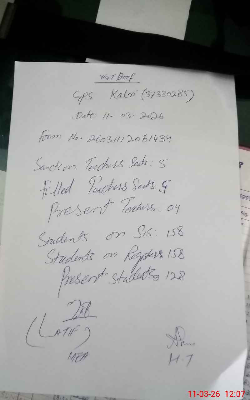 | EMIS Code: 37330285 | Name of School: GPS KALRI | |||