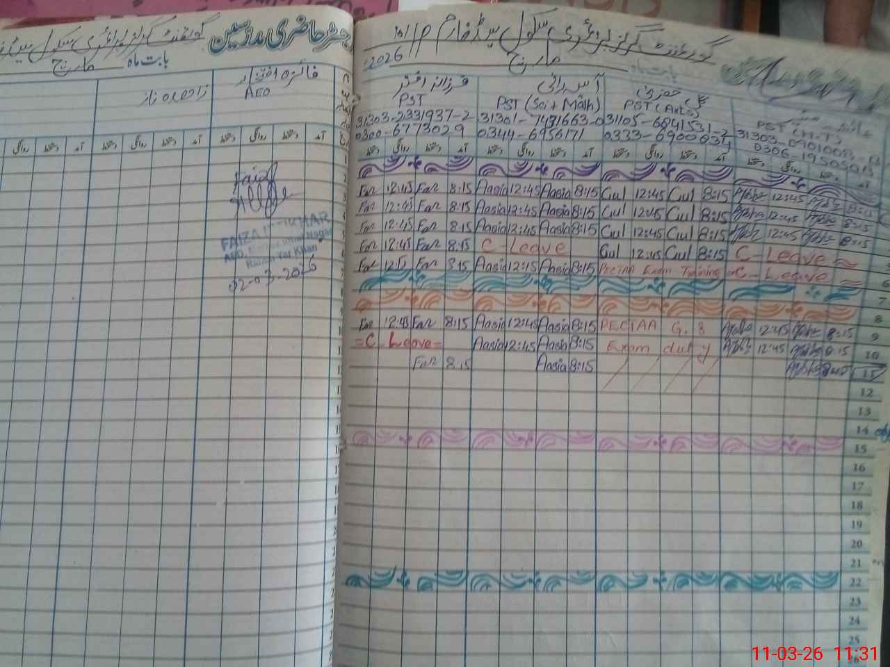 | Name: Ay**** Mu**** Designation: (School Headmaster's/Headmistress's) PST Phone/Cell Number: 03**** |