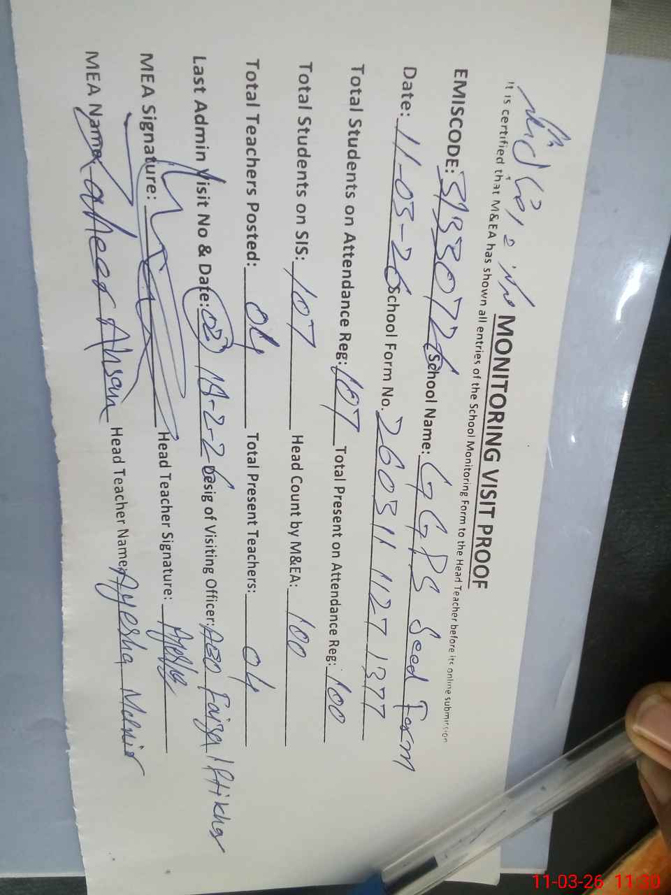 | EMIS Code: 31330726 | Name of School: GGPS SEED FARM | |||