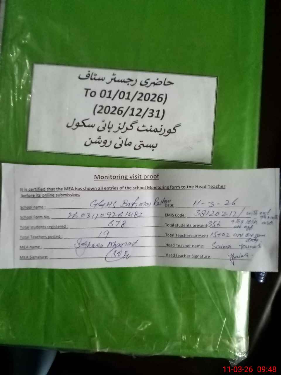 | EMIS Code: 38120212 | Name of School: GGHS BASTI MI ROSHAN | |||