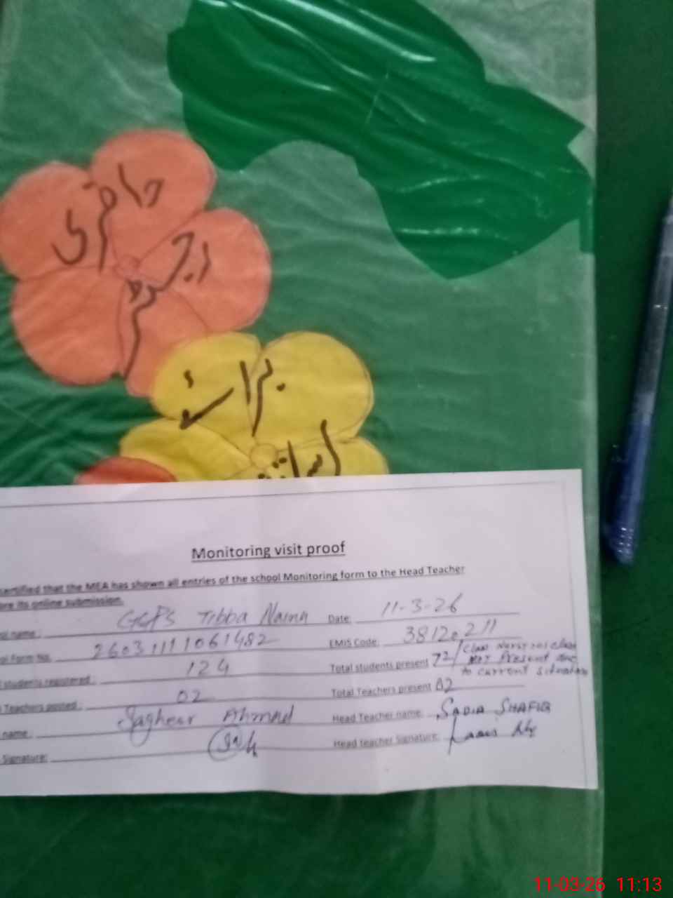 | Attendance Register | Head Teacher | MEA with School | Visit Proof |