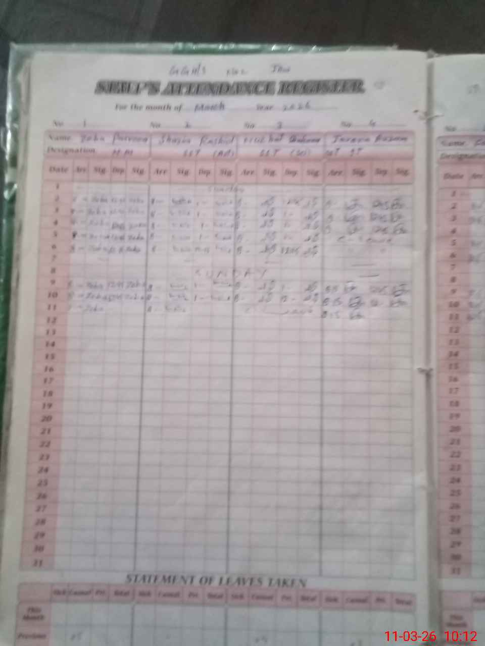 | Remarks (Use Separate Page if Required): 9th and 10rh class was on leave by headmistress for paper preparation. | |||||
