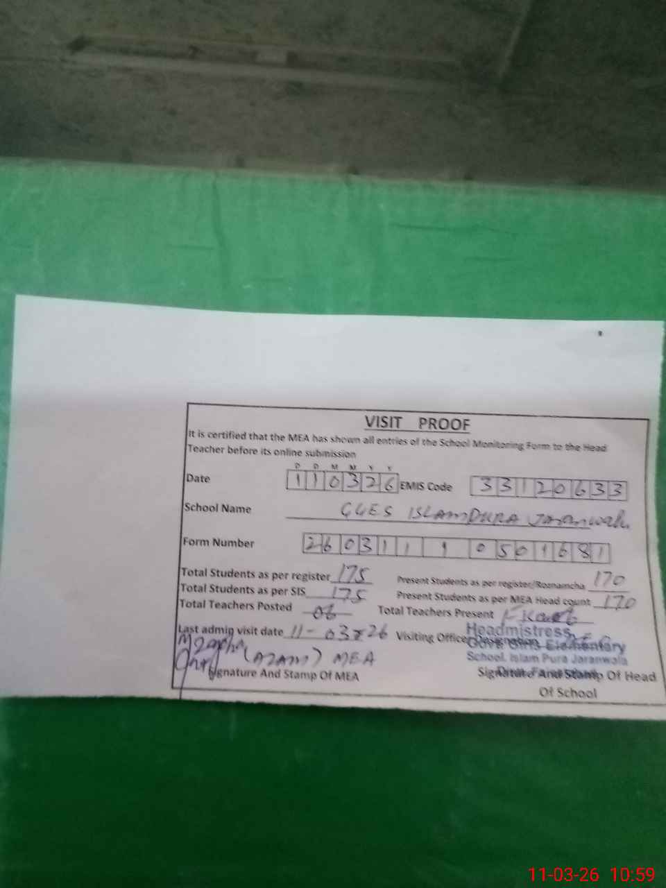 | EMIS Code: 33120633 | Name of School: GGES ISLAM PURA JARANWALA | |||