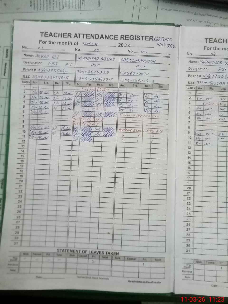 | Name: AK**** AL**** Designation: (School Headmaster's/Headmistress's) PST Phone/Cell Number: 03**** |