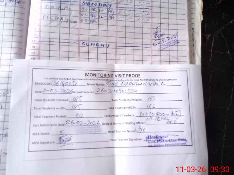 | EMIS Code: 36140052 | Name of School: GPS DARKHAN WALA | |||