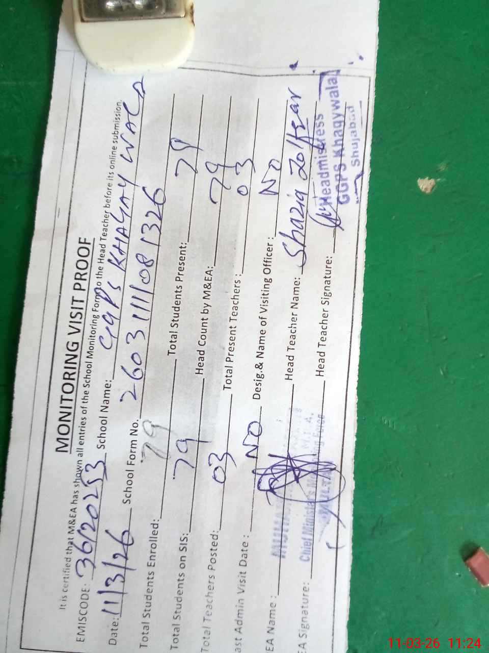 | EMIS Code: 36120253 | Name of School: GGPS KHAGAY WALA CHAH NAIB WALA SHUJABAD DISTT. MULTAN | |||