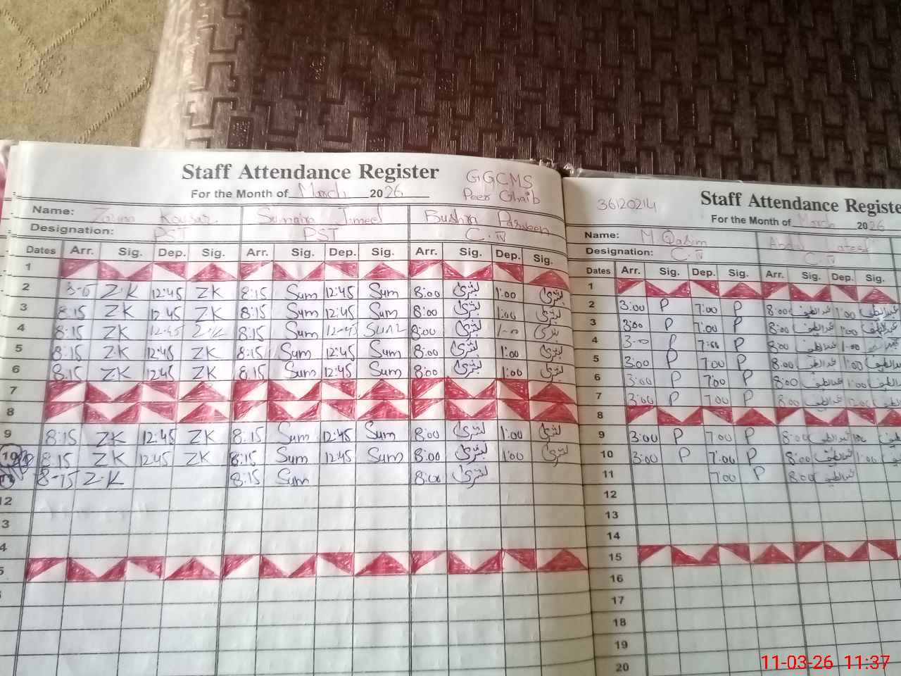 | CNIC | Full Name | Designation | R/C | Absence During Last Calender Month |