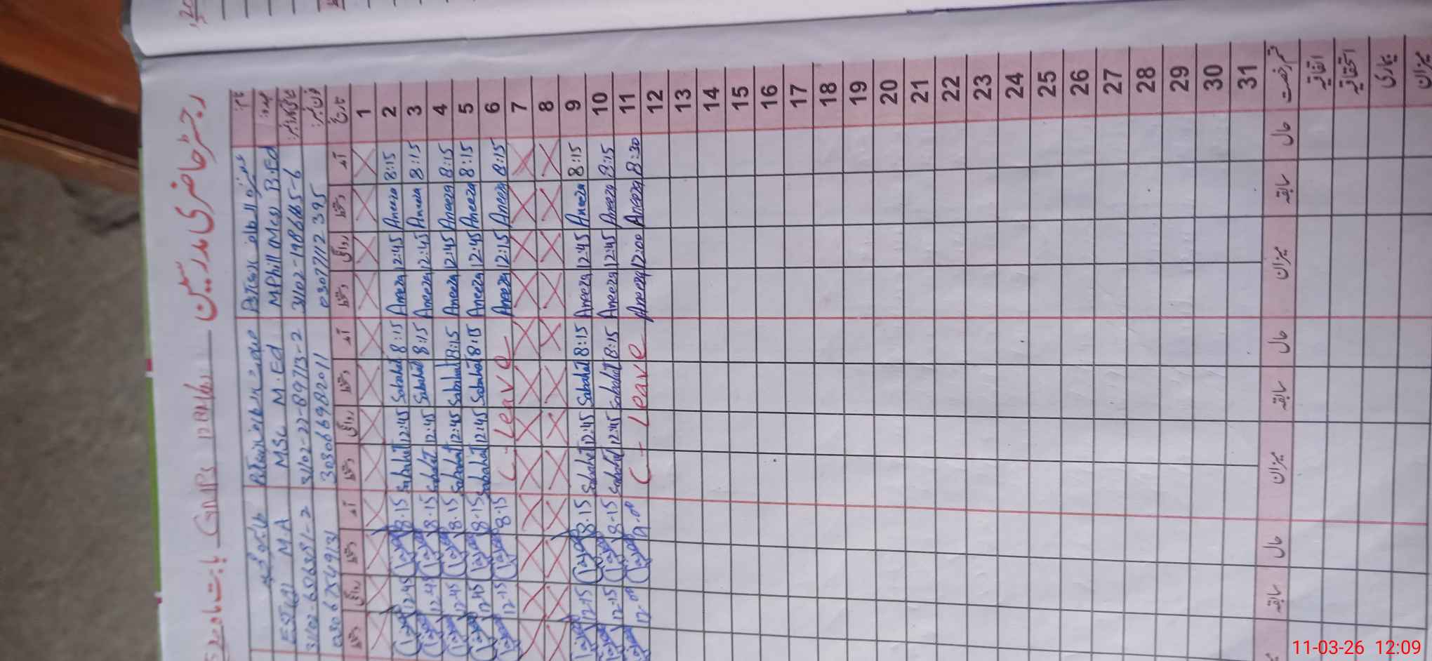 | CNIC | Full Name | Designation | R/C | Absence During Last Calender Month |