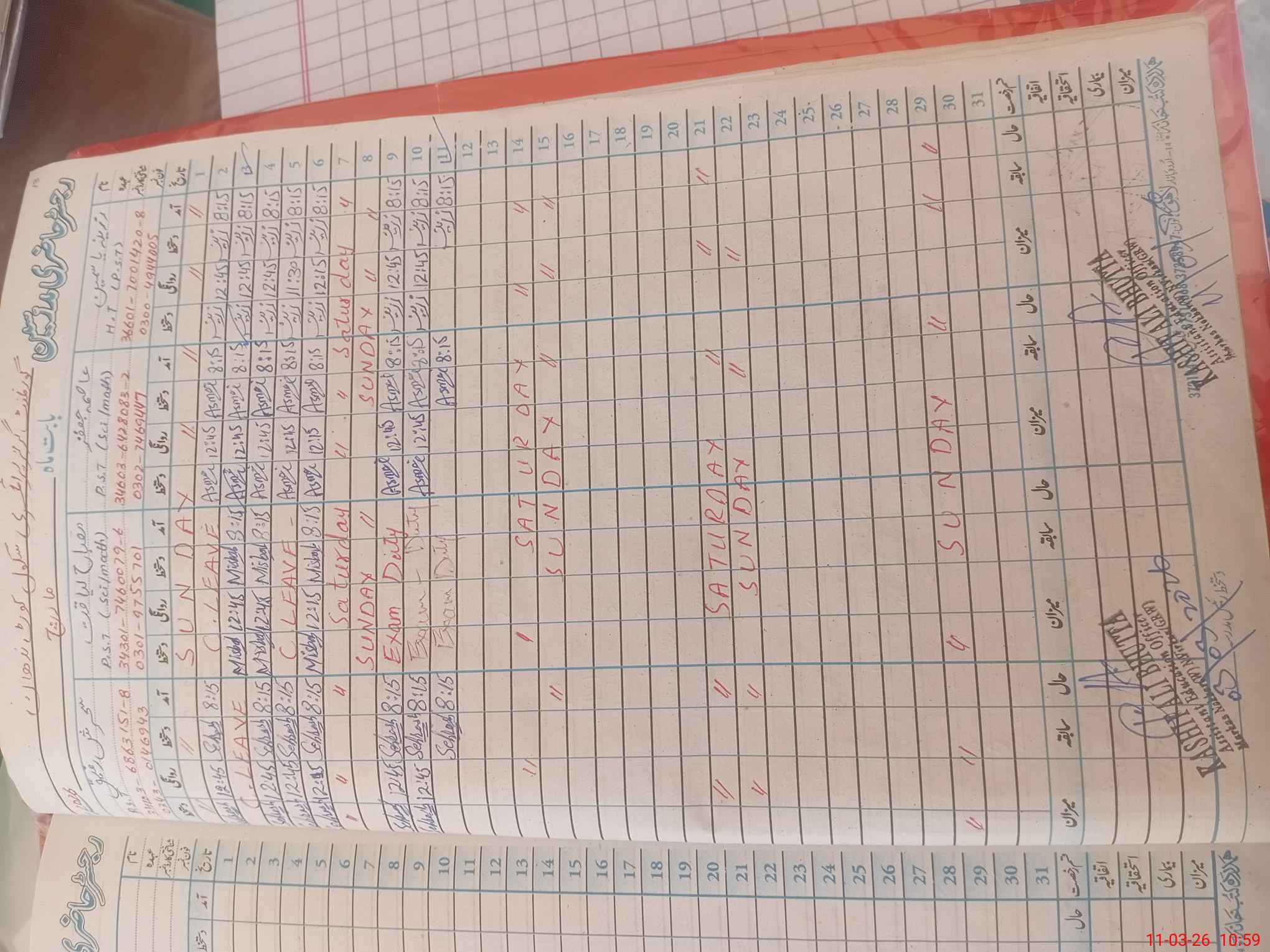 | Name: Za**** Ya**** Designation: (School Headmaster's/Headmistress's) PST Phone/Cell Number: 03**** |