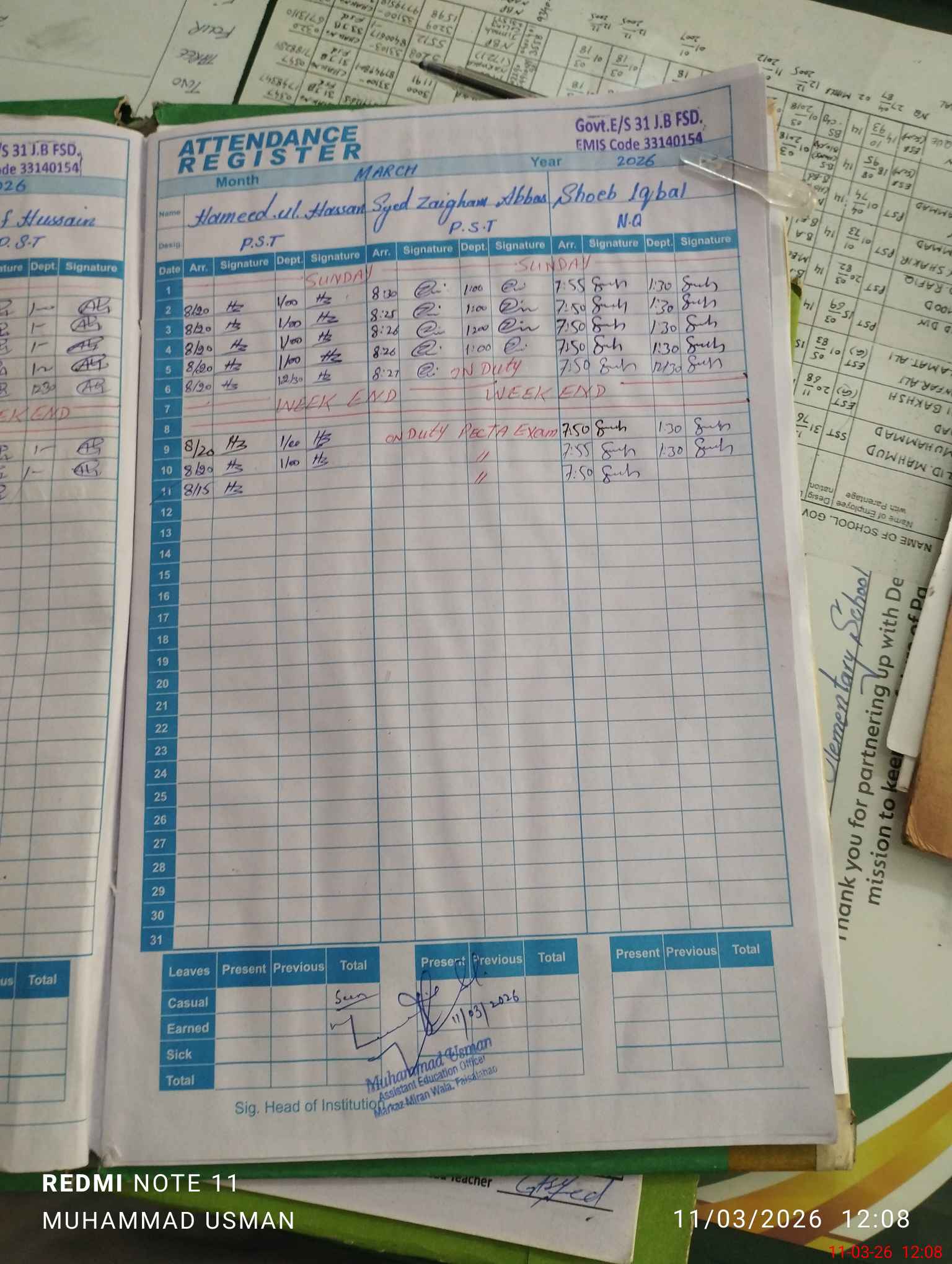| 33**** | Sy**** Za**** Ab**** Sh**** | ESE Arts | Contract | 0 | 0 | 0 | 0 | 0 | 0 | 0 | 0 | 0 | Exam Duty |