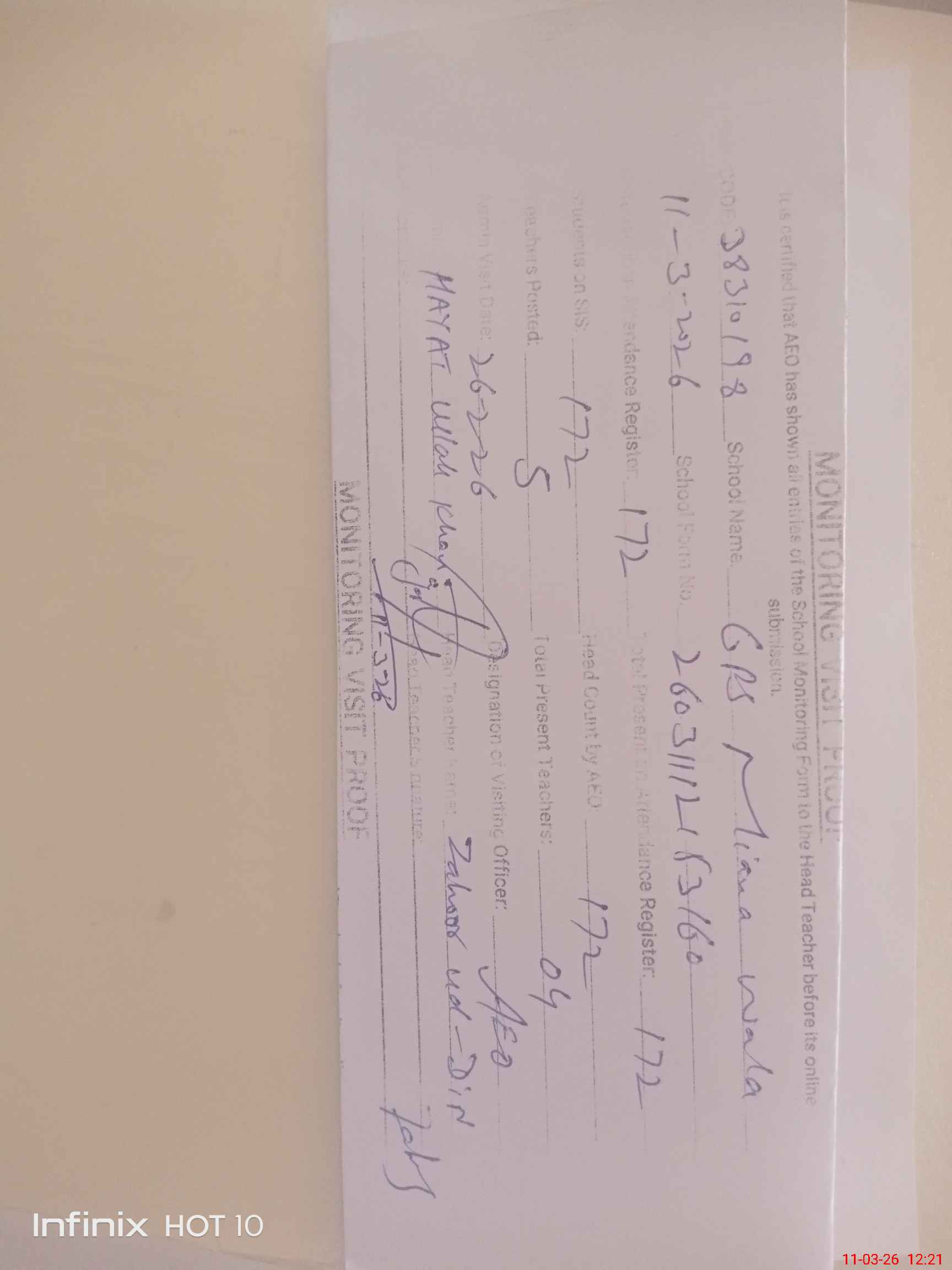 | EMIS Code: 38310198 | Name of School: GPS MIANA WALA | |||