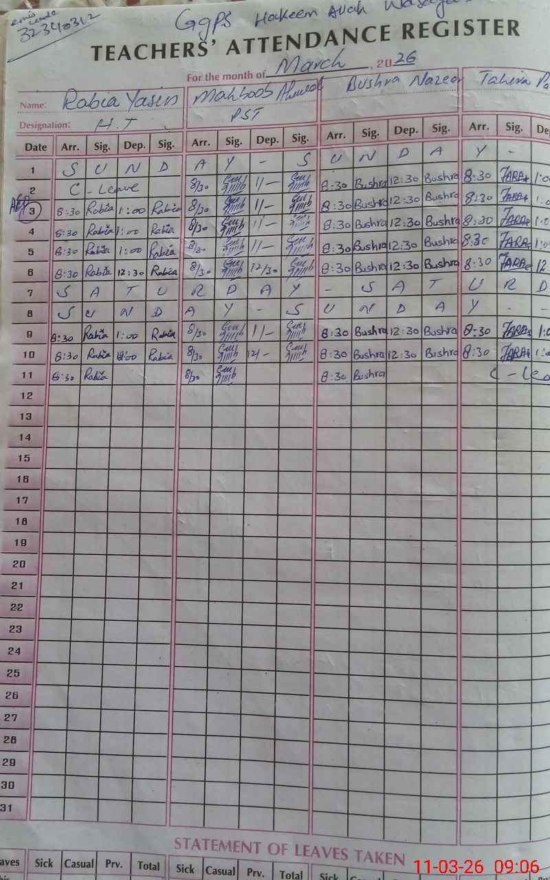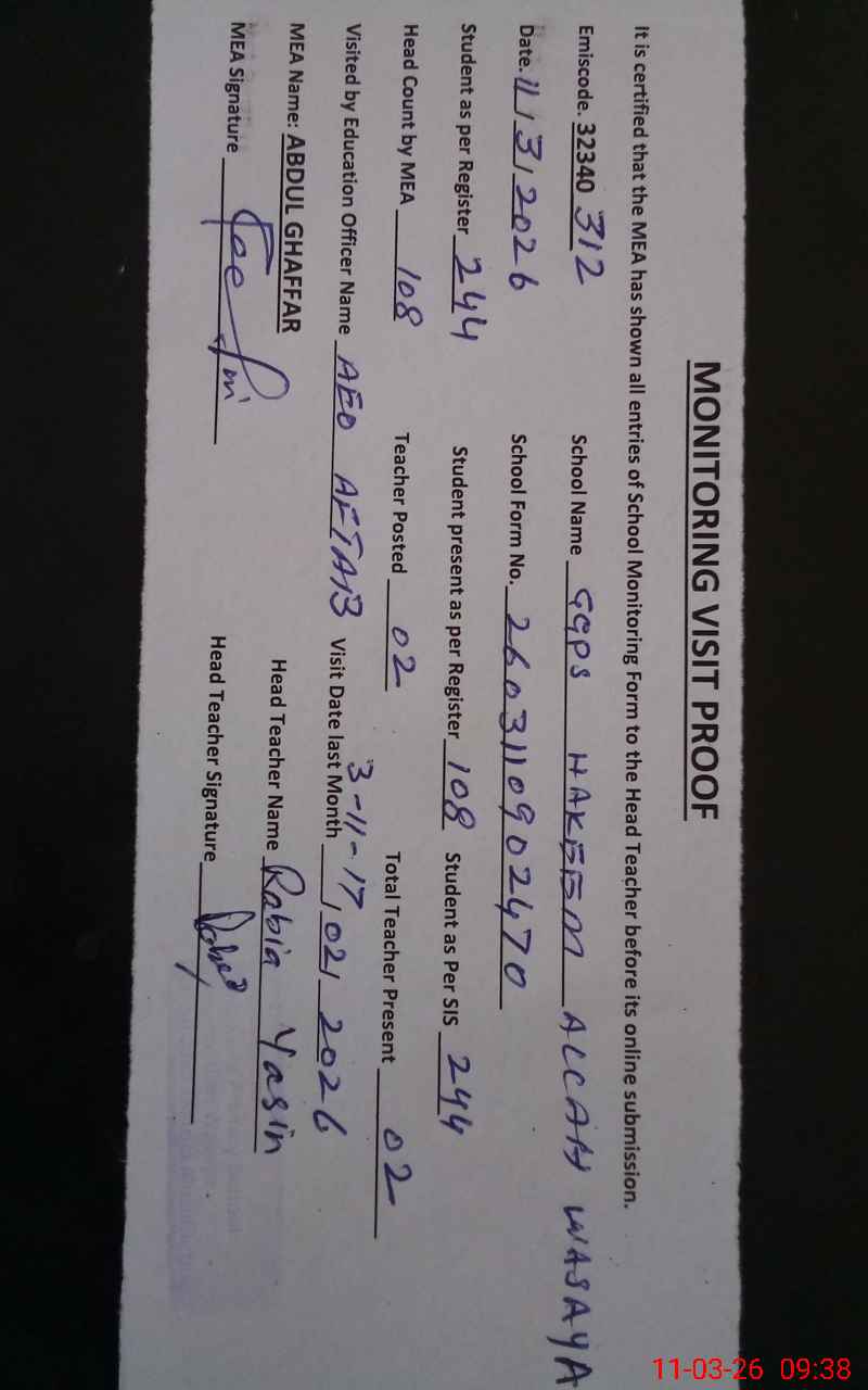 | EMIS Code: 32340312 | Name of School: GGPS HAKEEM ALLAH WASAYA | |||