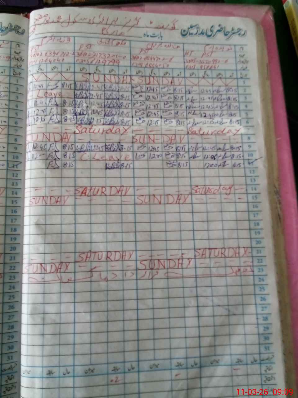 | Leave | Duty | Absent | Maternity | Medical | Ex- Pak |