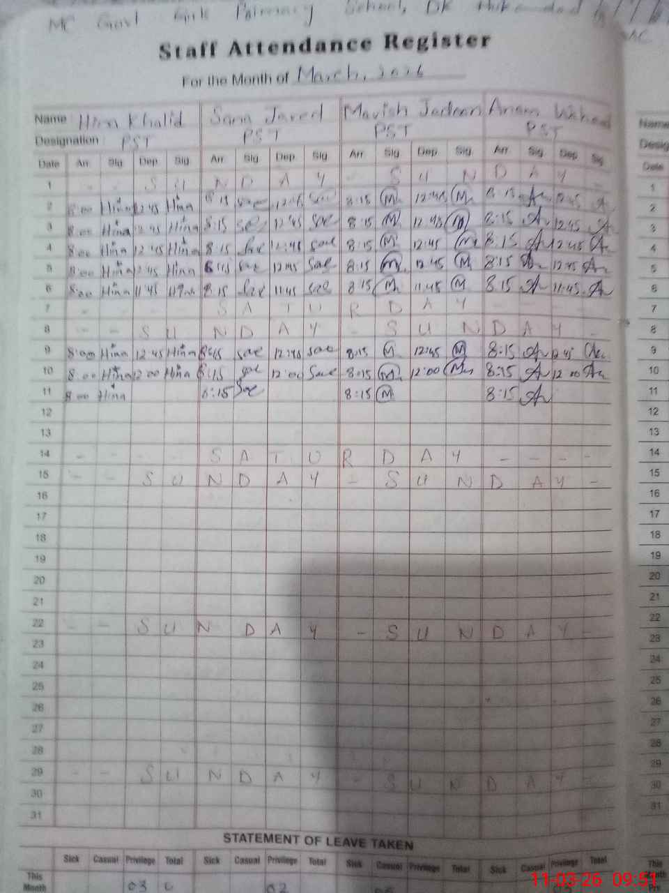 | Name: Hi**** Kh**** Designation: (School Headmaster's/Headmistress's) PST Phone/Cell Number: 03**** |