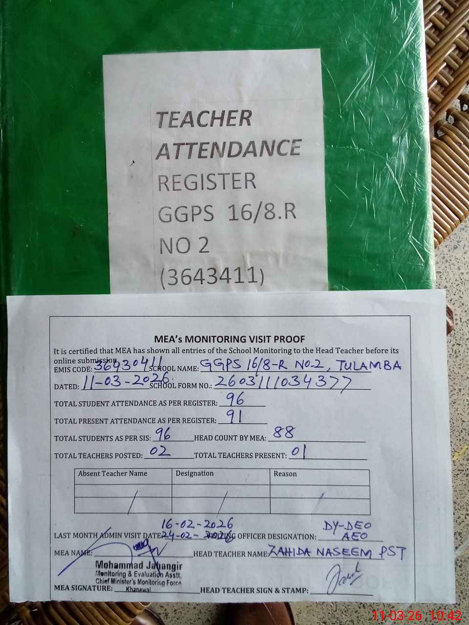 | EMIS Code: 36430411 | Name of School: GGPS 16/8-R NO.2 TULAMBA | |||