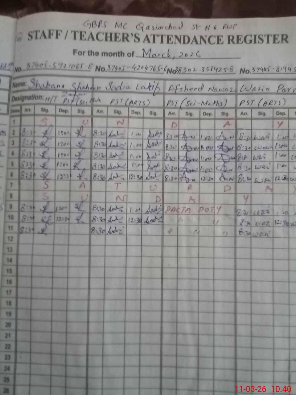 | 38**** | Af**** Na**** | PST Science/Maths | Regular | 0 | 0 | 0 | 0 | 0 | 0 | 0 | 0 | 0 | Exam Duty |