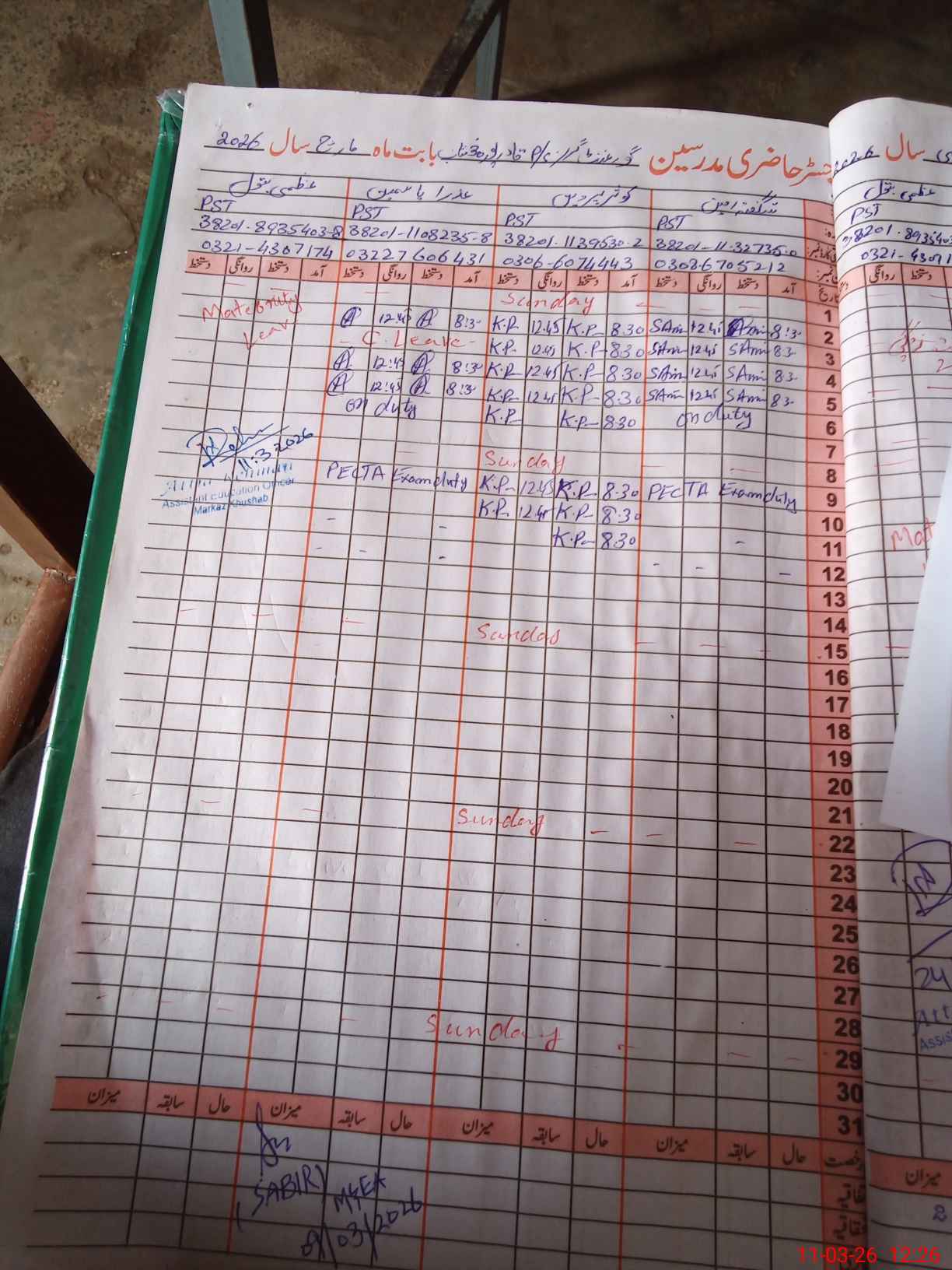 | 38**** | Uz**** Ba**** | PST Science/Maths | Regular | 0 | 0 | 0 | 0 | 0 | 0 | 0 | 0 | 0 | Maternity |
