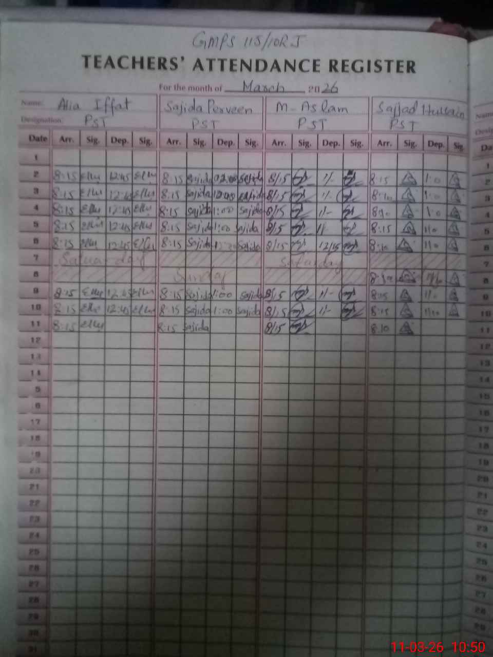 | Monitoring Date: 11-03-2026 | Start Time: 11-03-2026 10:31 AM | End Time: 11-03-2026 11:39 AM | Name of MEA: Is**** Me**** | |