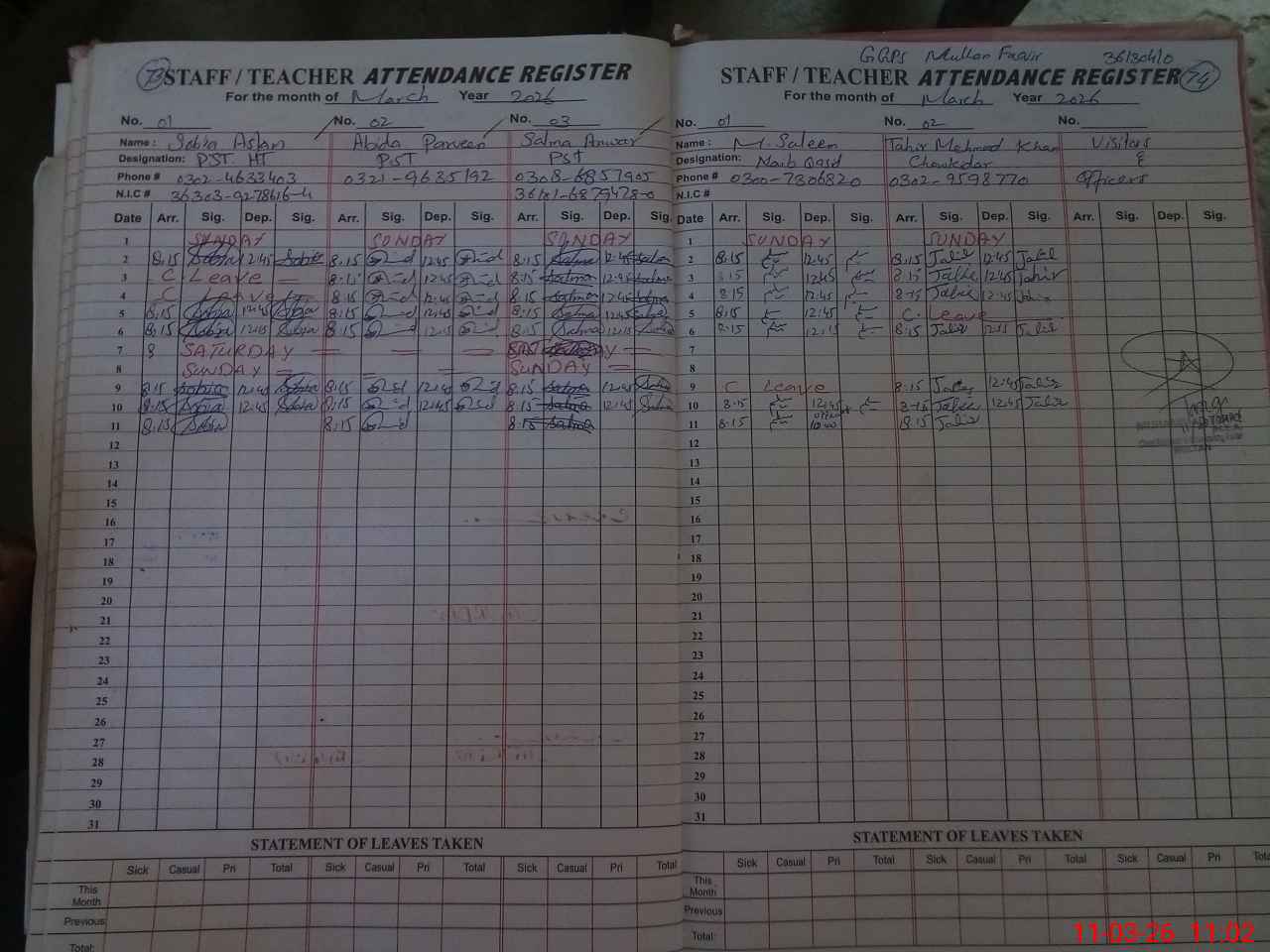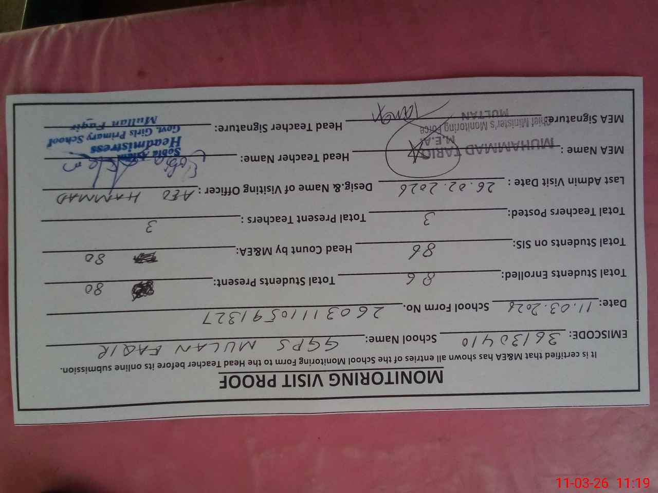 | EMIS Code: 36130410 | Name of School: GGPS MULAN FAQIR MULTAN | |||