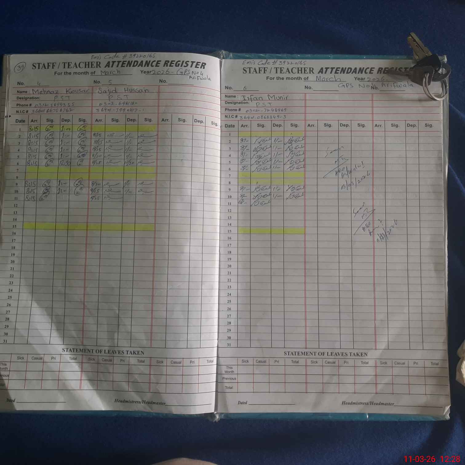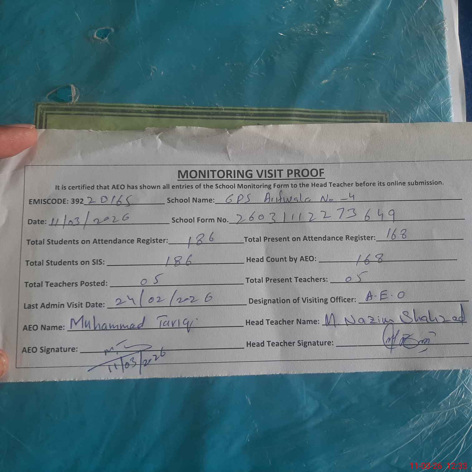 | EMIS Code: 39220165 | Name of School: GPS ARIF WALA NO 4 | |||