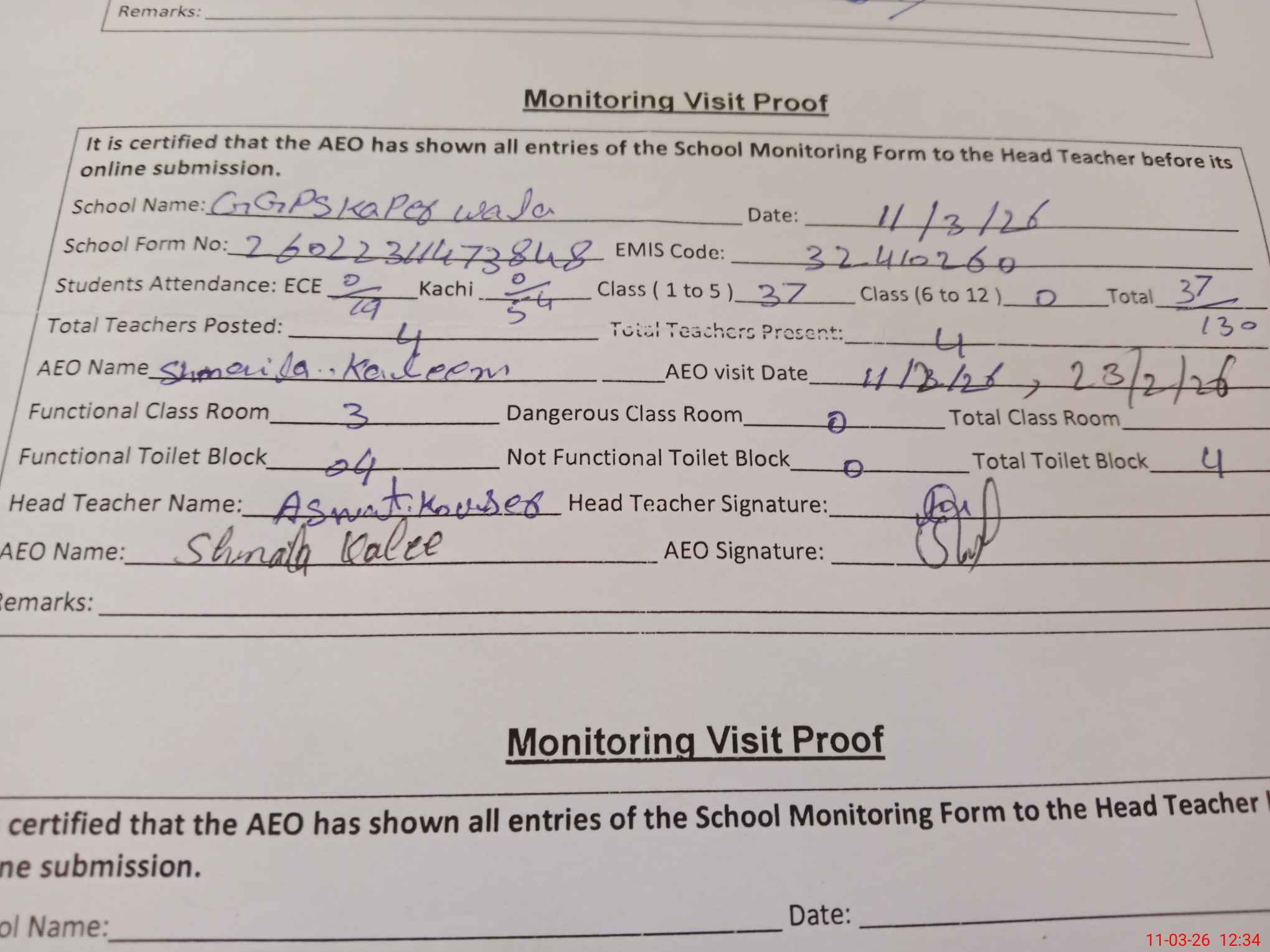 | EMIS Code: 32410260 | Name of School: GGPS KAPER WALA | |||