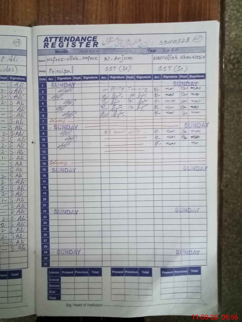 | 33**** | No**** Al**** | JC | Regular | 2 | 0 | 0 | 0 | 0 | 0 | 0 | 0 | 2 | Absent (Un-Authorized) |
