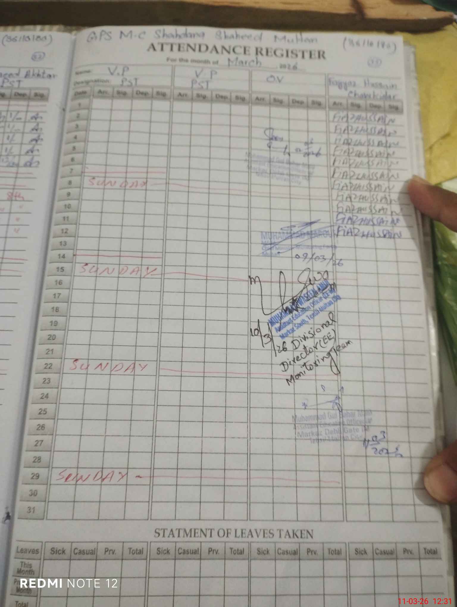| 36**** | Mu**** Sa**** Ak**** | PST Arts | Regular | 0 | 0 | 0 | 0 | 0 | 0 | 0 | 0 | 0 | Exam Duty |