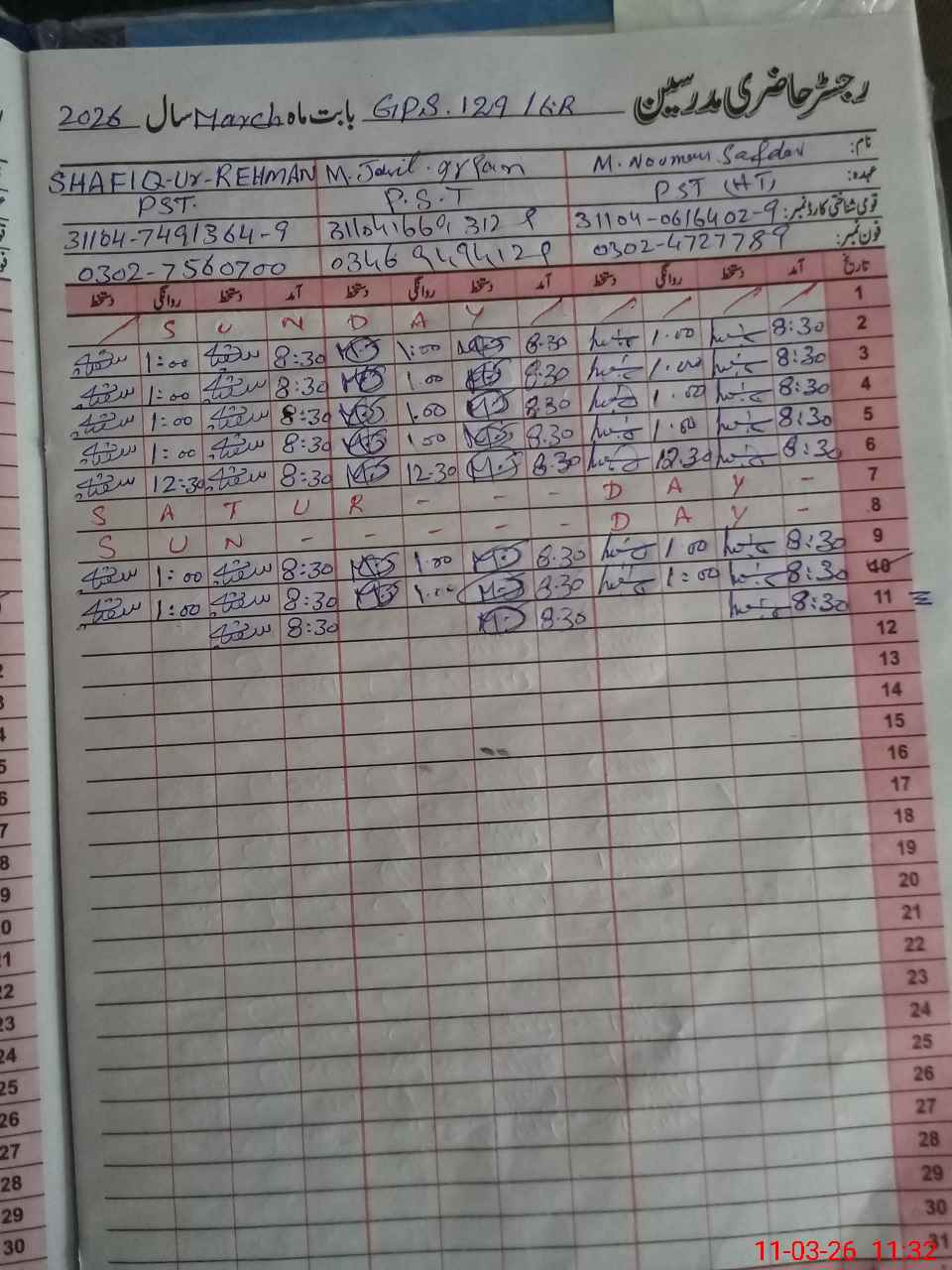 | 31**** | Mu**** At**** Fa**** | PST Science/Maths | Regular | 0 | 1 | 0 | 0 | 0 | 0 | 0 | 0 | 0 | Exam Duty |