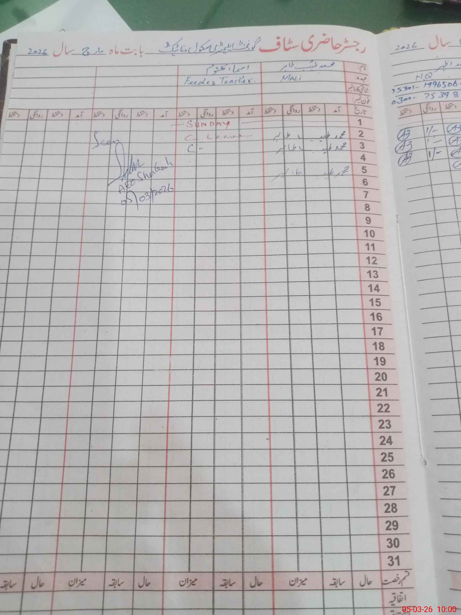 | Name: HA**** NA**** Designation: (School Headmaster's/Headmistress's) SST Headmaster Phone/Cell Number: 03**** |