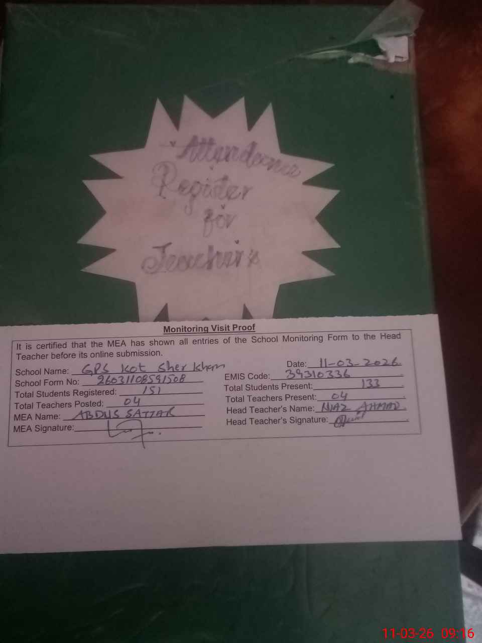 | EMIS Code: 39310336 | Name of School: GPS KOT SHER KHAN | |||