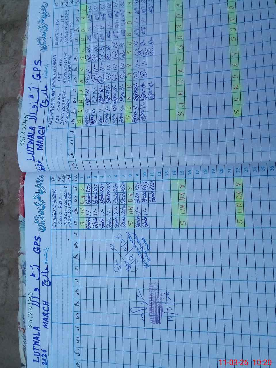 | Name: Mu**** Am**** Kh**** Designation: (School Headmaster's/Headmistress's) PST Phone/Cell Number: 03**** |