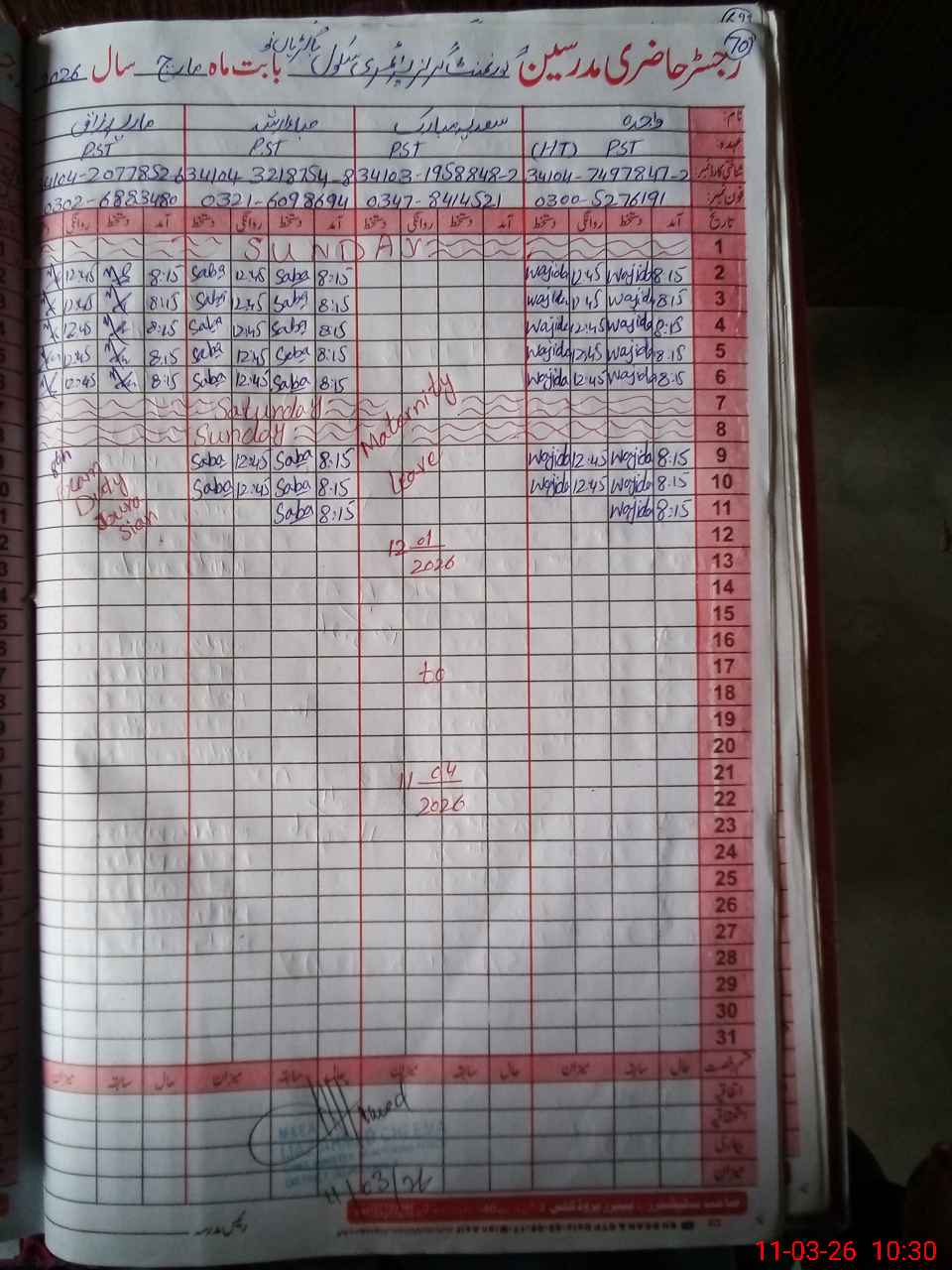 | Name: WA**** AB**** Designation: (School Headmaster's/Headmistress's) PST Phone/Cell Number: 03**** |