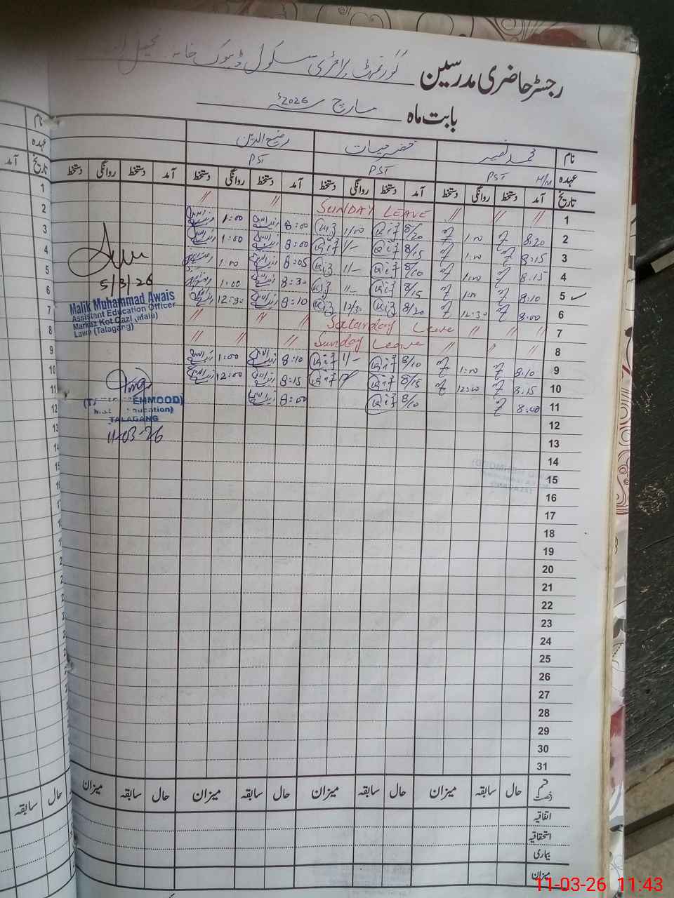 | District: TALAGANG | Tehsil: LAWA | Markaz: KOT QAZI-MALE | Level: Primary | |