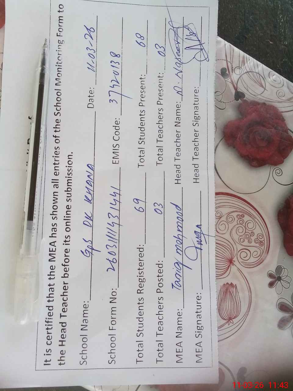 | EMIS Code: 37420138 | Name of School: GPS DHOK KHANA | |||